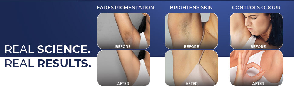Multi-acid exfoliation and Niacinamide help reduce pigmentation over time. - Persistent odor despite deodorant use