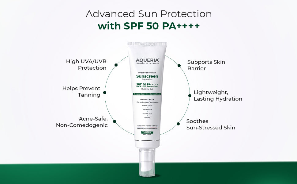 Powered by Salicylic Acid to help refine pores, Niacinamide to improve clarity and tone, and Aquaxyl for long-lasting hydration, the formula keeps skin balanced and comfortable throughout the day.French Ectoin helps strengthen the skin barrier against heat, pollution, and UV stress, while French Glacier Thermal Water adds pure mineral hydration to reduce redness and discomfort associated with acne-prone skin during sun exposure.
